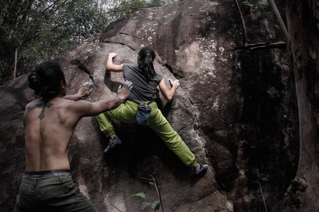 เมื่อสัปดาห์ที่ผ่านมา มีณได้มีโอกาสสัมผัสปีนหน้าผาจริง แบบ Bouldering ไม่ใกล้ไม่ไกลจากกรุงเทพมหานครสักเท่าไหร่ แค่ 3-4 ชั่วโมงเอง (โดยรถยนต์) สถานที่คือ เขายายเที่ยง จังหวัดนครราชสีมา