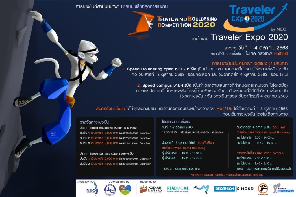 - Thailand Bouldering Competition 2020 (3-4 October) 1st Place of Speed Bouldeirng & 2nd Place of Speed Campus Open Women