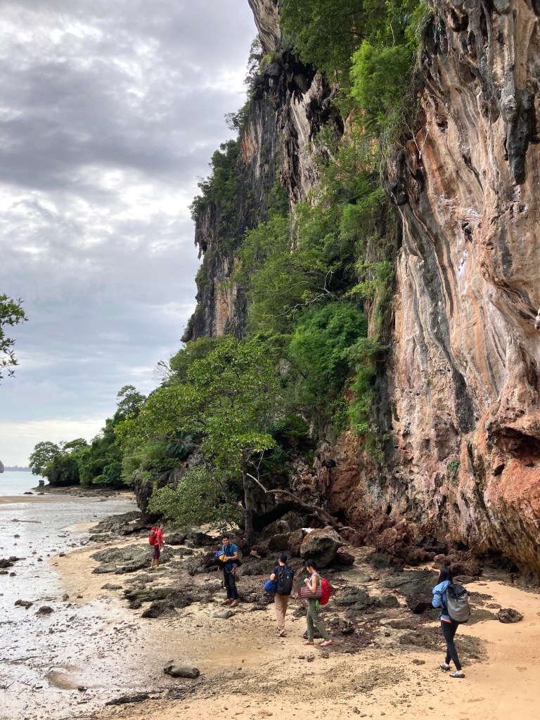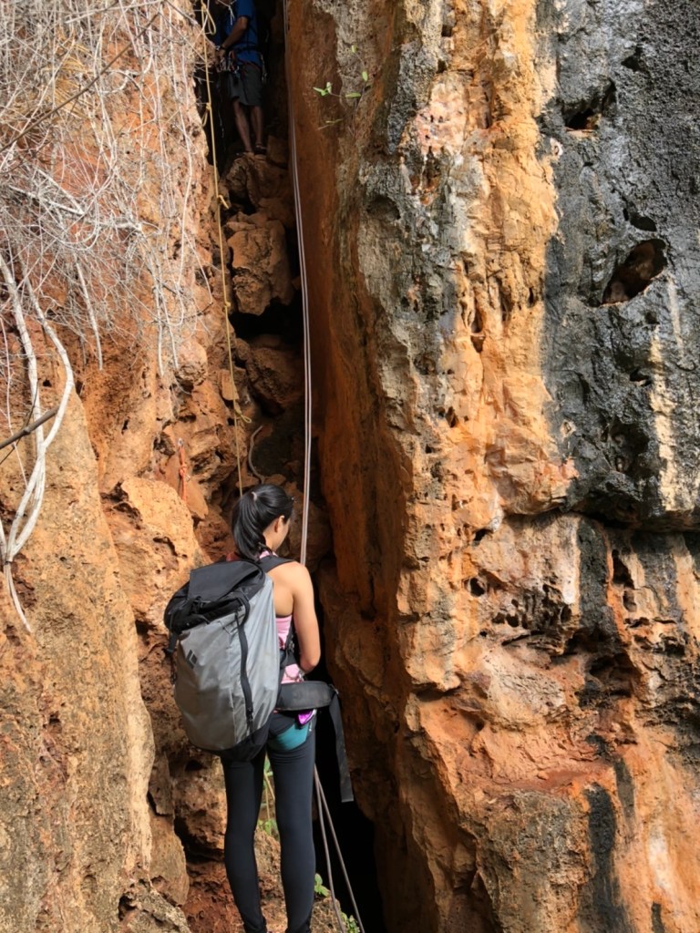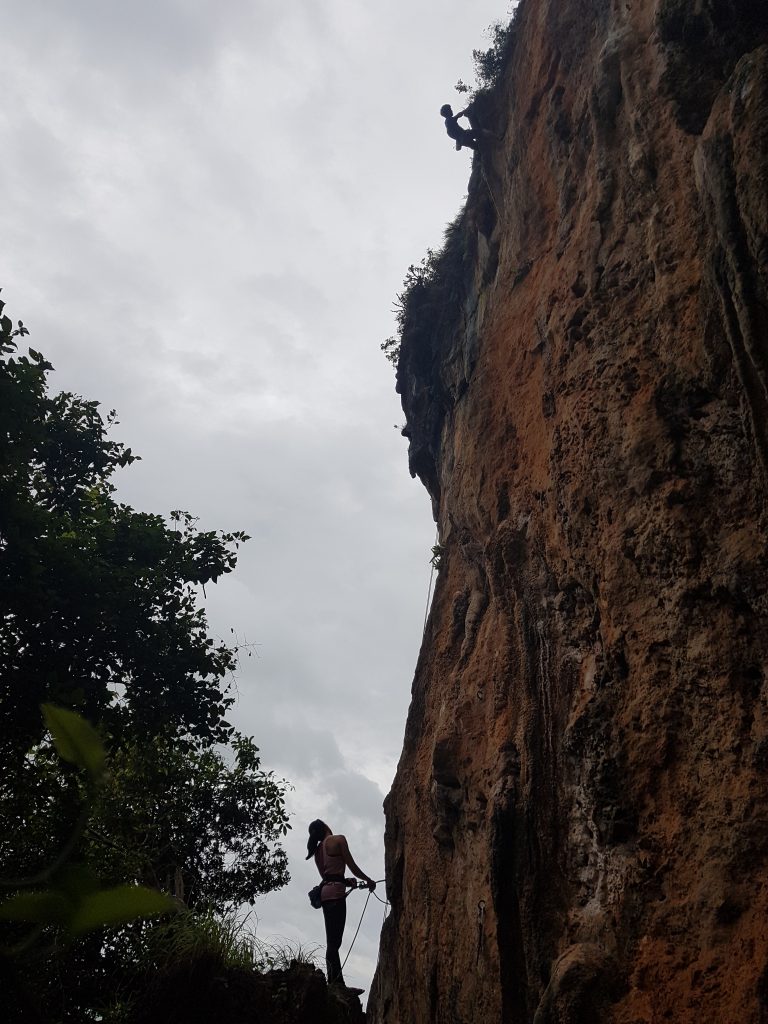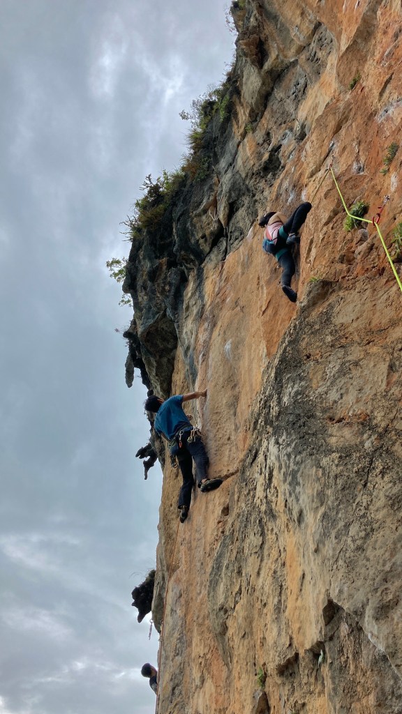 ถึงที่หมายเวลา 8 โมงค่ะ พร้อมกับการปีนมาก ซึ่งหน้าผานี้มีทั้งหมด 11 เส้นทาง โดยประมาณ แล้ววันที่มีณมาปีนนั้นไต้ฝุ่นเข้าพอดี ฝนตก แต่ว่าหน้าผานี้ ไม่เปียกฝนค่ะ โชคดีมาก พวกเราปีนกันเหมือนหน้าผานี้มีแต่พวกเรา ปีนจนถึงบ่าย 3 โมงเลยค่ะ (เกือบ 7 ชั่วโมง)