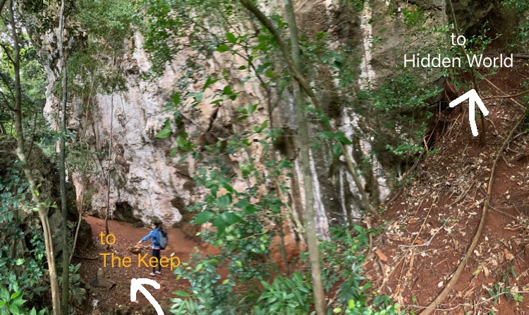 เมื่อเดินผ่านระหว่าง 2 หน้าผาแล้วจะต้องปีนลงค่ะ แต่เพื่อความปลอดภัยสามารถทำโรยตัวลงดีกว่านะคะ แล้วเราก็ถึง The Keep ค่ะ